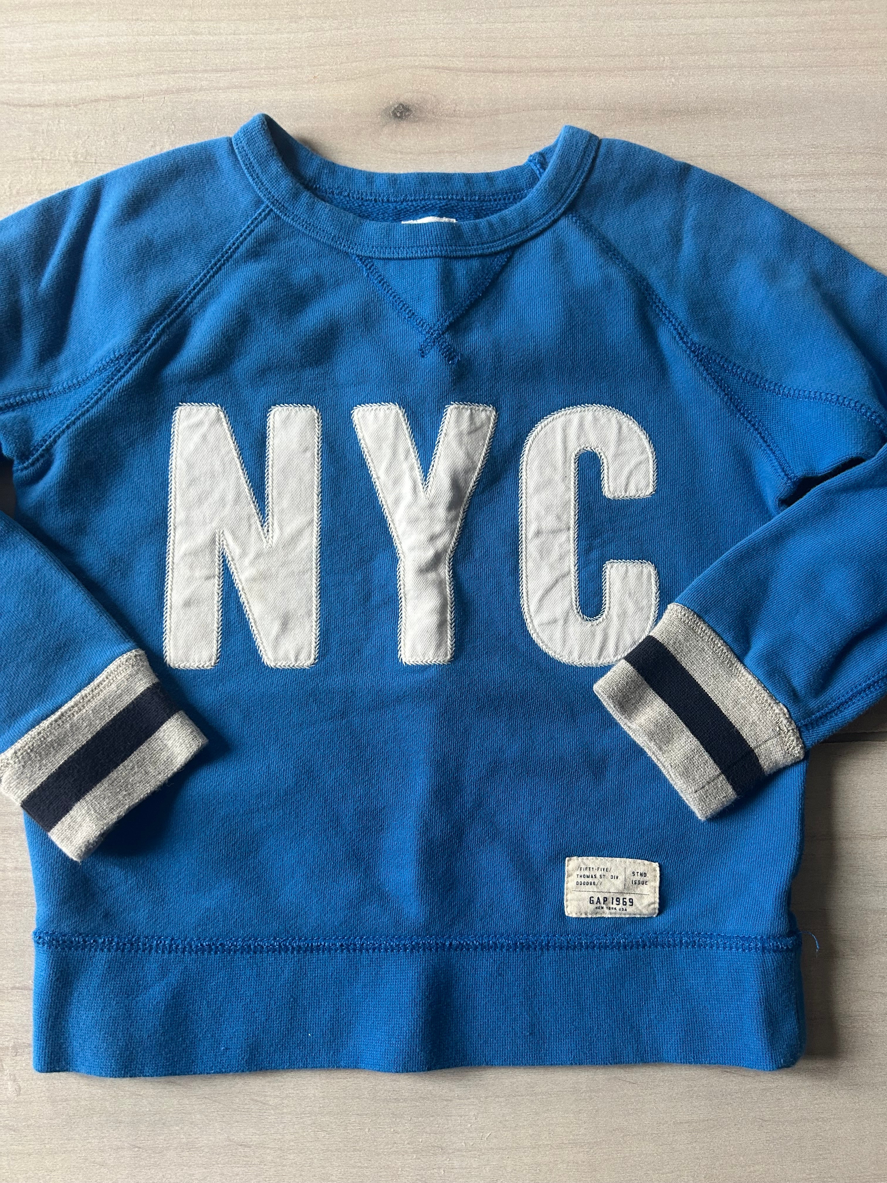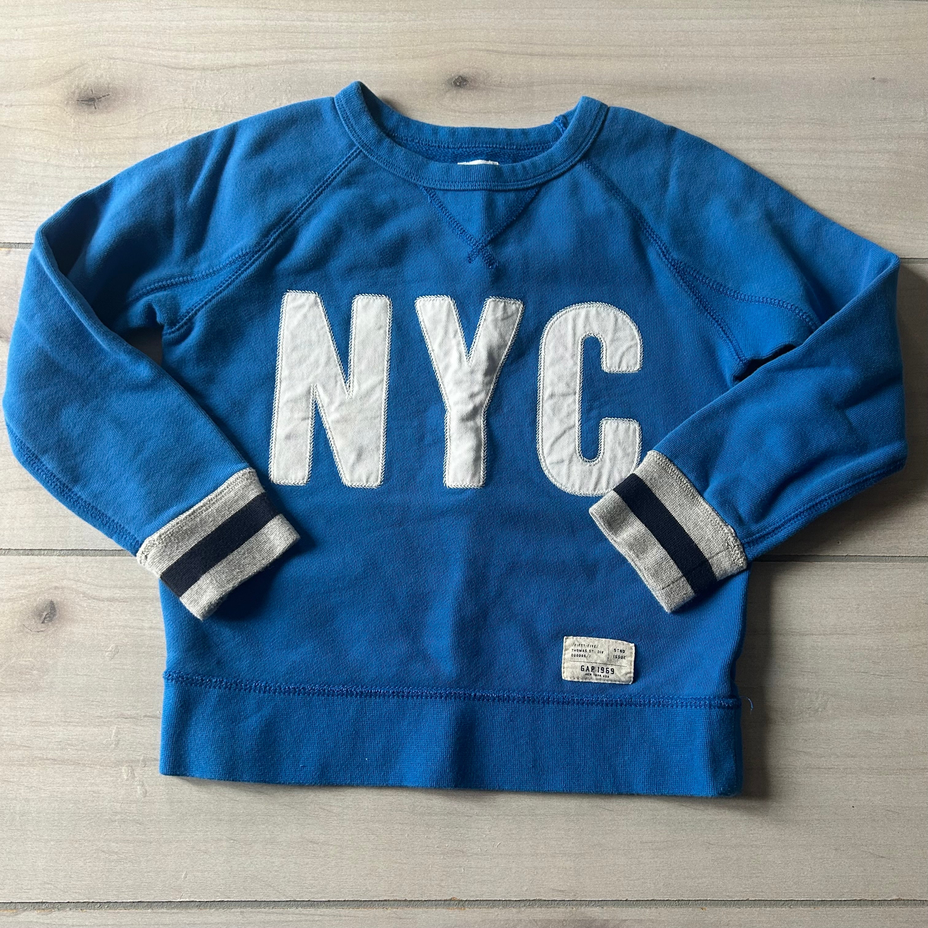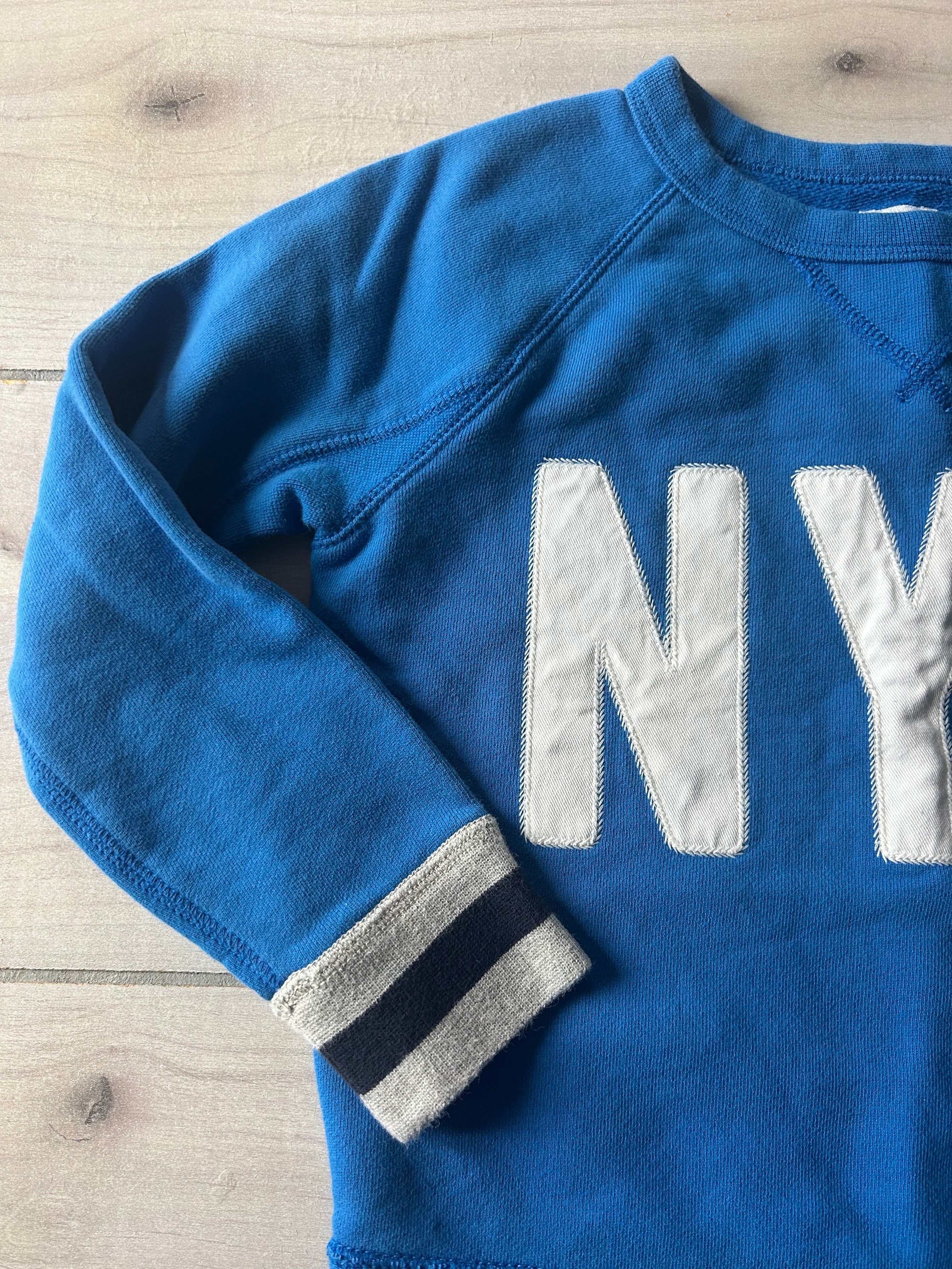Gap Kids Blue Embroidered NYC Sweatshirt. Size 6-7 years. Pull on style. Soft cotton